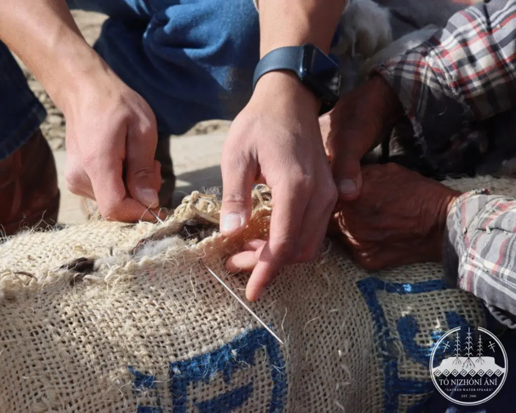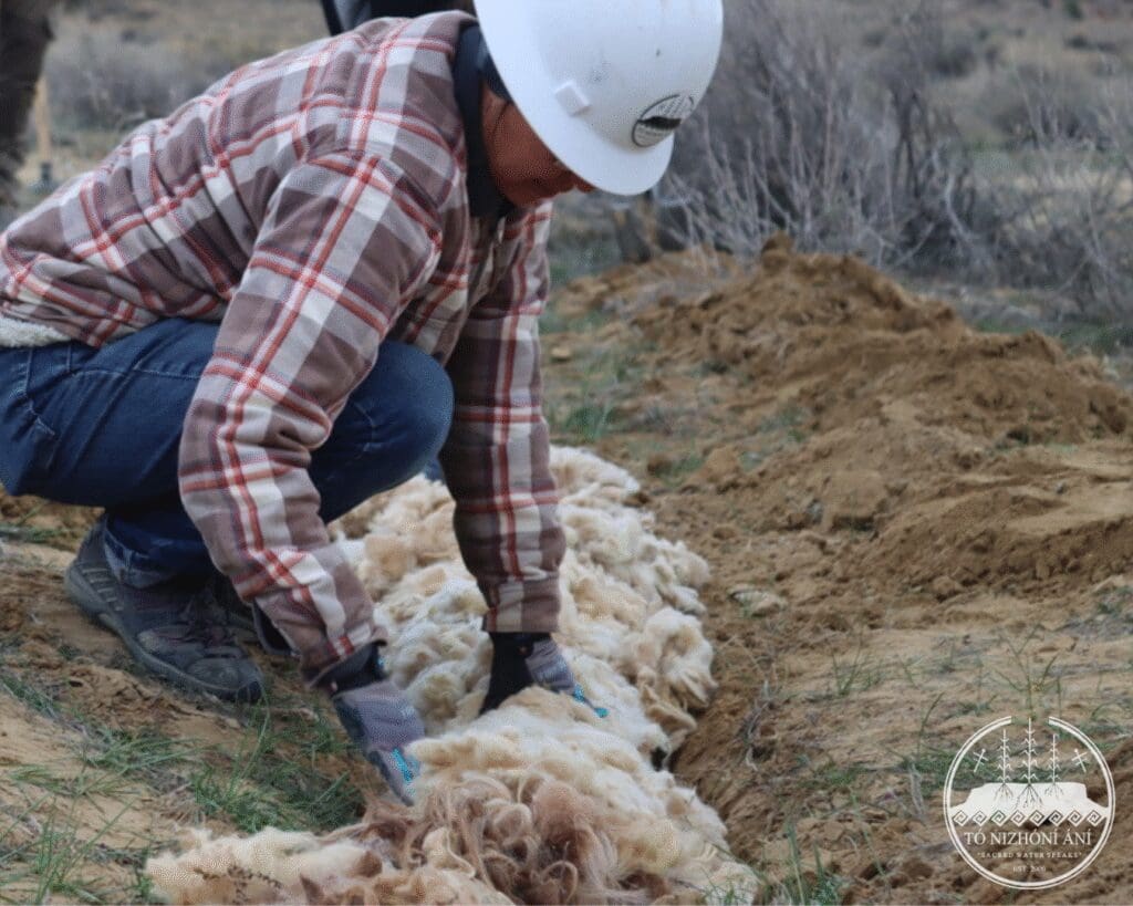What started as an idea in August 2025, while passing through one of the lesser-wooded communities on the Navajo Nation, morphed into a mini-pilot project. The Navajo Nation is in no short supply of wool and mohair; often, communities that don’t use wool for weaving discard the wool. Here at Tó Nizhóní Ání (TNA), our watershed restoration crew experimented with wool and watershed restoration to find ways to repurpose unwanted/rough wool.