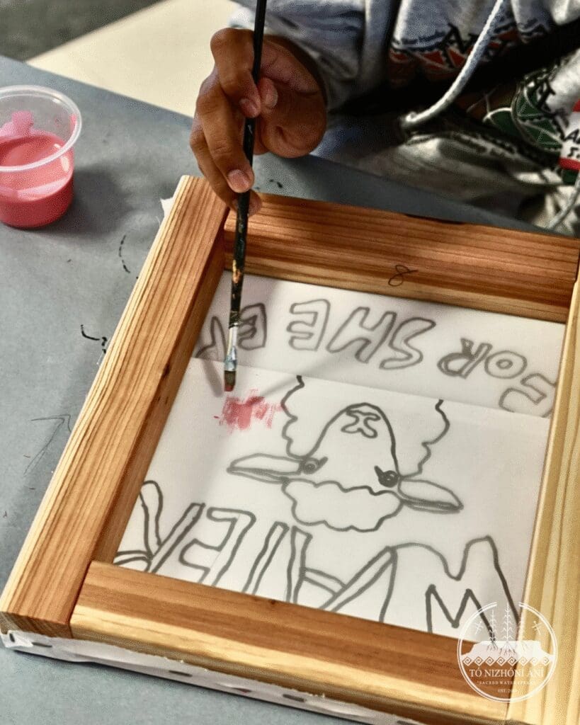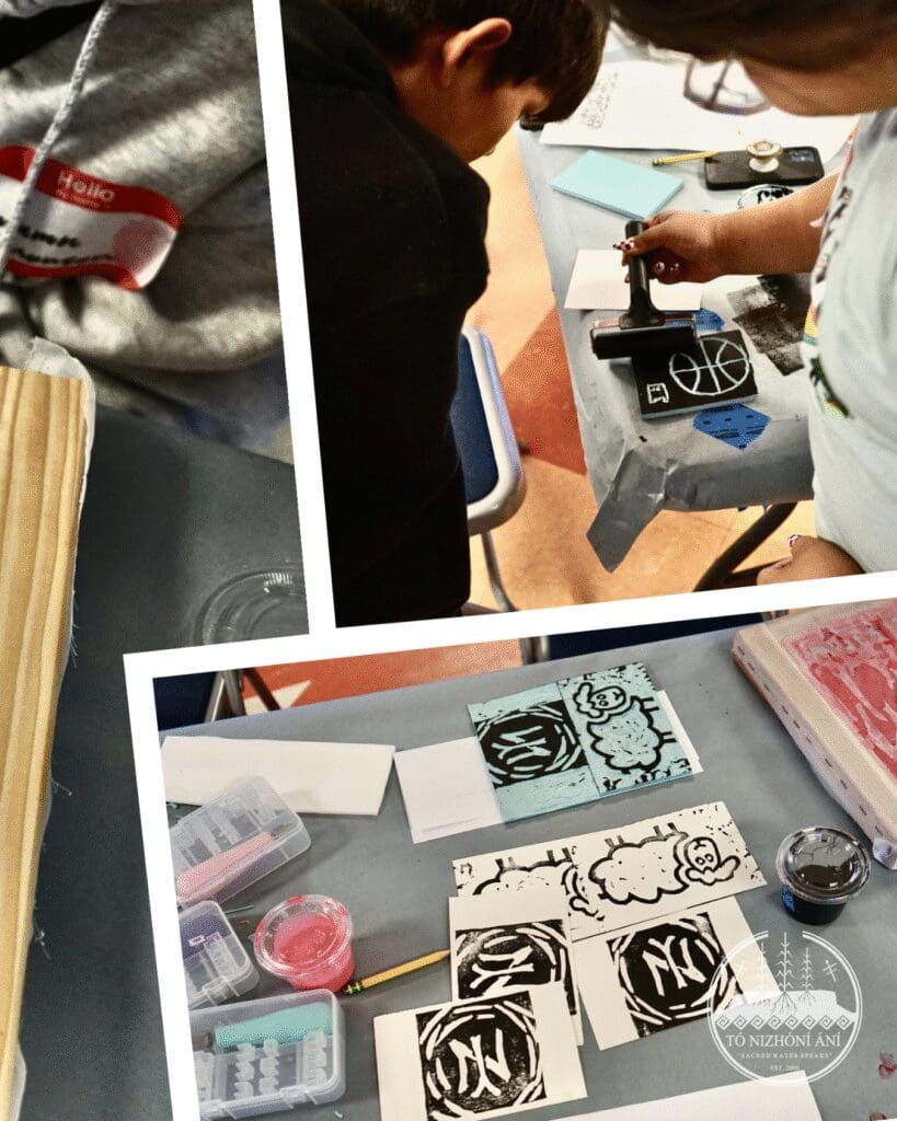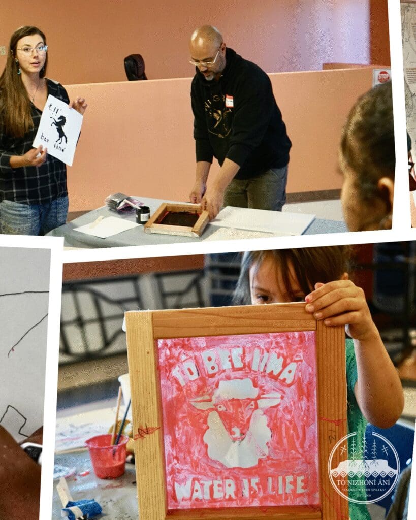 During the last one to two hours of the workshop, also known as Community Hour, we welcomed families and community members to join us to print and learn. Having our community witness the prints created by families and youth alike, celebrating the importance of water continues to empower our organization as we work to bring power back to our Diné (Navajo) communities impacted by coal. Tó Nizhóní Ání is proud and honored to have made space for Diné youth of Dził Yíjiin to learn and create using the two printmaking methods.