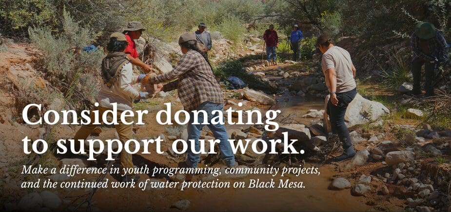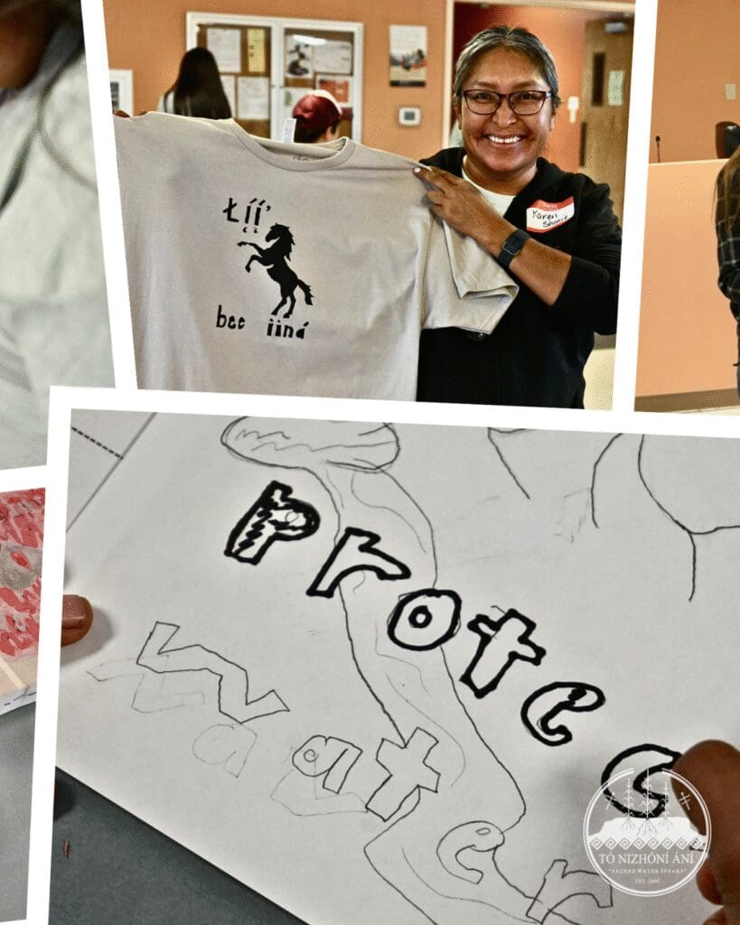 “Water in this region is constantly under attack by big corporations looking to profit at the expense of the land, water, our communities, and families. Art evokes emotion, inspires conversation, and builds community. Developing, creating, and sharing art, together, around the protection of water, emphasizing Tó bee iina, water is life, plays a key role in organizing to resist water desecration in this region.”